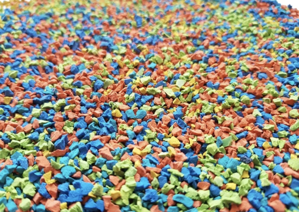 Гранулят из синтетического каучука и стойких пигментов. Экологически чистый материал, входит в состав бесшовных спортивных покрытий. Устойчив к воздействию ультрафиолета, водных и химических растворов. Сохраняет яркость цвета на протяжении 10–15 лет.