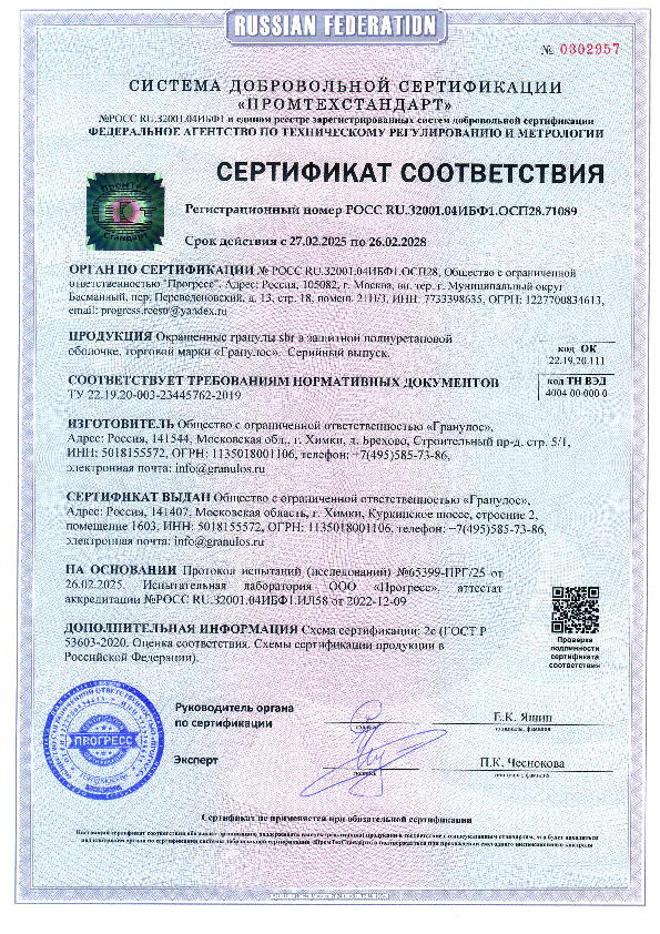 Производство SBR-крошки происходит на автоматической линии, где покрышки после осмотра измельчаются, проходят три степени очистки от металлического и текстильного корда, пыли и грязи на сепараторах, пылеуловителе и вибросите. На финальном этапе производства подготовленное сырье окрашивается стойкими пигментами и покрывается полиуретаном, препятствующим выцветанию.